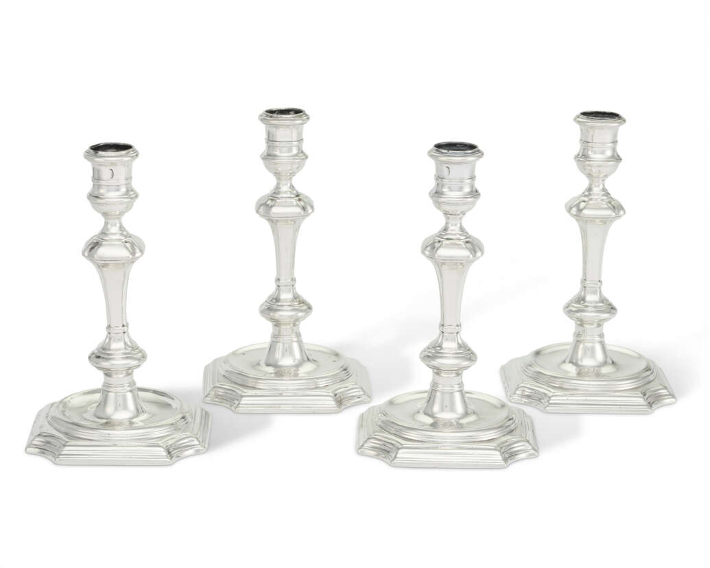 Los 30 | A SET OF FOUR GEORGE II IRISH SILVER CANDLESTICKS