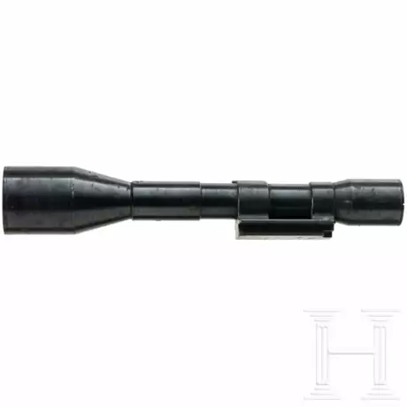 Schwarz brünierter Tubus, Halteband mit Schwalbenschwanz zur Montage und zur Aufnahme der Beleuchtung, Hersteller "bek" (= Hensoldt Werk für Optic und Mechanik, Herborn). Klare Optik mit schwach erkennbarem Zielstachel.
