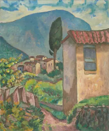 Mediterrane Landschaft. Öl auf Leinwand. Unten links signiert. Verso nummeriert 67. 55x46 cm. Ohne Rahmen.