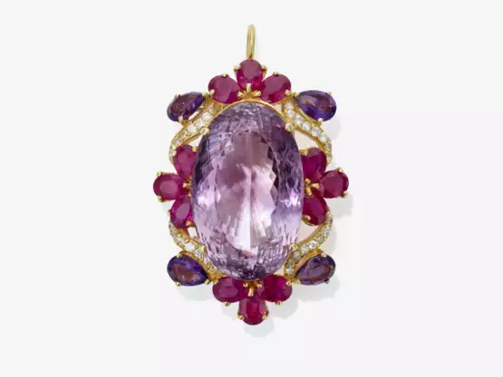 Los 95 | Anhänger/Brosche mit Amethysten, weißen und pinken Saphiren