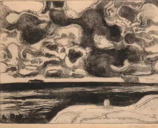 Los 215 | Austen, Rudolf (1931 Hainspach-2003 Rostock) "Gewitterstimmung", Radierung, sign. u.r. und dat. ´71, 22x28 cm, im Passepatout hinter Glas und Rahmen (freischaffend ab 1958 als Maler und Grafiker in Rostock, Bet…