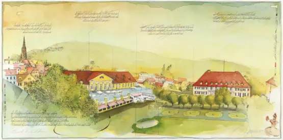 ╔Dabei:Ders.╗ Gutenberg in Mainz. Farbradierung. 1988. Blgr. 39,6 x 29, cm. Plgr. 12,7 x 9,8 cm. Betitelt, sign. u. dat. - Ex. 61/150. - ╔Ders.╗ Hommage à Davidoff. Farbradierung. 2009. Blgr. 40 x 30 cm. Plgr. 22,6 x 16,4 cm. betitelt, sign. u dat. - Ex. 11/20. ╔Claus Petschmann╗Portugall. 50 Jahre kunst im bauch. Mecum Verlag Mannheim. 2003.
