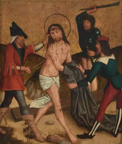 Entkleidung Christi. Öl und Goldgrund auf Holz. 23,5x19,7 cm. Gerahmt.