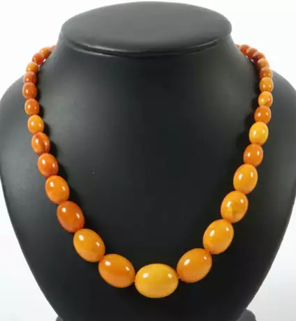 Los 1397 | Bernsteinkette 20. Jhr., verschieden große Bernsteinperlen im Verlauf,…