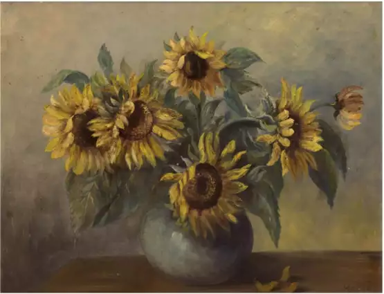 Los 166 | Beyer, Otto (1885 Kattowitz-1962 Berlin) "Sonnenblumen in blauer Vase", Öl/MP., sign. u.r., 60x75, Rahmen, (An der Kunsthochschule Breslau studierte er um 1900, anschließend an der Kunstakademie Königsberg bei …