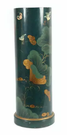 Los 2589 | Blumensäule China, 20. Jh., Hohlzylinder, lackiertes Dekor mit Seerose…