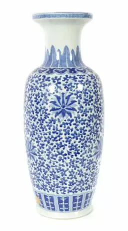 Los 2541 | Bodenvase China, 20. Jh., Porzellan, blaue Unterglasurmalerei mit Blat…