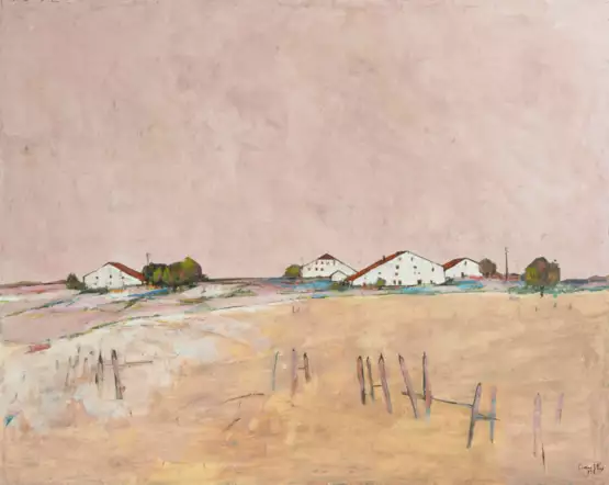 Rouges Terres. 1985. Öl auf Leinwand. Unten rechts signiert und datiert. Verso nummeriert 33. 120x150 cm. Gerahmt.