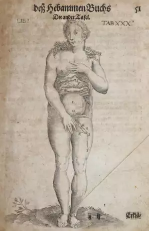 VD17 3:606029C. - Sehr seltene deutsche Ausgabe dieses bedeutenden Werkes zur Geburtshilfe, das erstmals 1609 in Paris erschien und eines der ersten Werke zu diesem Thema mit Kupferstich-Illustrationen ist. - Louise Bourgeois (1563-1636) war 26 Jahre lang Hebamme am franz. Königshof und bereitet den Weg der Geburtshilfe aus dem Mittelalter in die Neuzeit. Sie half der Königin Maria de' Medici bei allen sechs Geburten, deren erstes Kind der spätere König Ludwig XIII (1601-1643) wurde. - Teil 1 ohne Erscheinungsjahr, Teil 2 1628 erschienen u. Teile 3-4 von 1626. - Zu Beginn ist zusätzl. das Titelblatt "Schutzrede oder Verantwortung Frawen Loysa Bourgeois..." eingebunden (Ffm., Merian 1626). - Innengel. mit Papier verstärkt, gebräunt (stellenweise stark), tls. etw. Randläsuren, Anfang mit Wasserschaden in unt. Ecke (tls. etw. Textverlust), stellenweise fleckig bzw. wasserrandig.