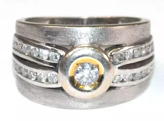 Brillant-Ring, 585er WG/GG, besetzt mit 25 Brillanten von zus. ca. 0,26 ct., Ges.-Gew.. 10,2 g, RG 52