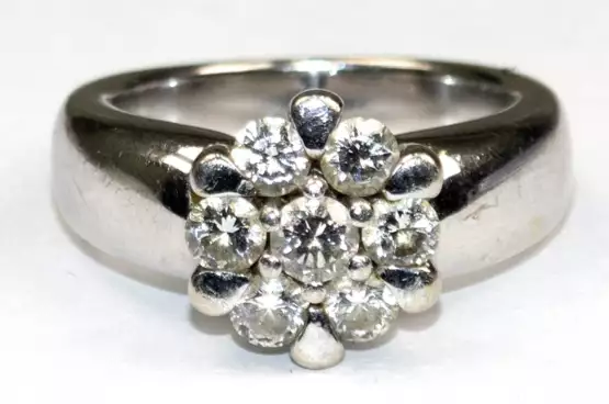 Los 889 | Brillant-Ring, Christ, 585er WG, blütenförmiger Ringkopf mit 7 Brillanten von zus. ca. 0,9 ct. ausgefasst, Ges.-Gew. 10,7 g, RG 51