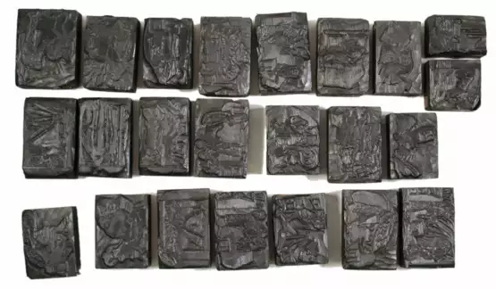 Vorh.: ╔Der hohle Zahn╗ 23 von 25 Holzstöcken und ╔Die beiden Enten und der Frosch╗ 13 von 15 Holzstöcken. Münchener Bilderbogen 330 u. 325. Gebrauchs- u. Alterssp.