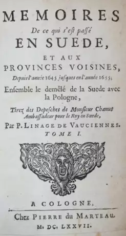 VD17 39:123821T. BL (German books) C517. Lt. Weller (Druckorte) Bd. 2, S. 28 in Amsterdam erschienen lt. BL (German books) gedruckt von E.H.Fricx in Brüssel. - Erinnerungen was in Schweden und den benachbarten Provinzen seit dem Jahr 1645 bis zum Jahr 1655 geschehen ist. - Nur leicht gebräunt u. tls. etw. braunfleckig, Ebd. etw. fleckig, insges. schönes Ex.