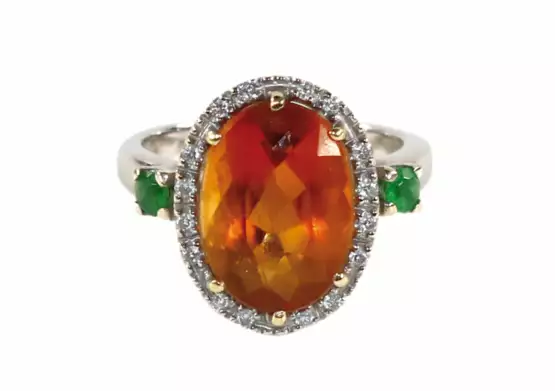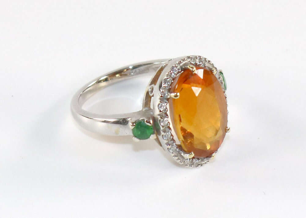 Damenring, im Zentrum mit ovalem Citrin in einer Krappenfassung, die Umrandung mit Brillianten im Briliiantschliff. Ringgr. 54. - Schöner dekorativer Ring, gut erhalten.
