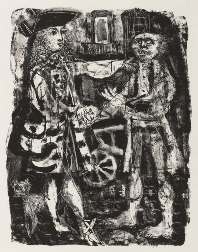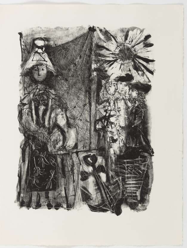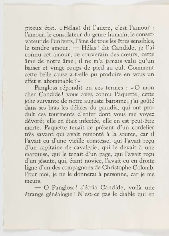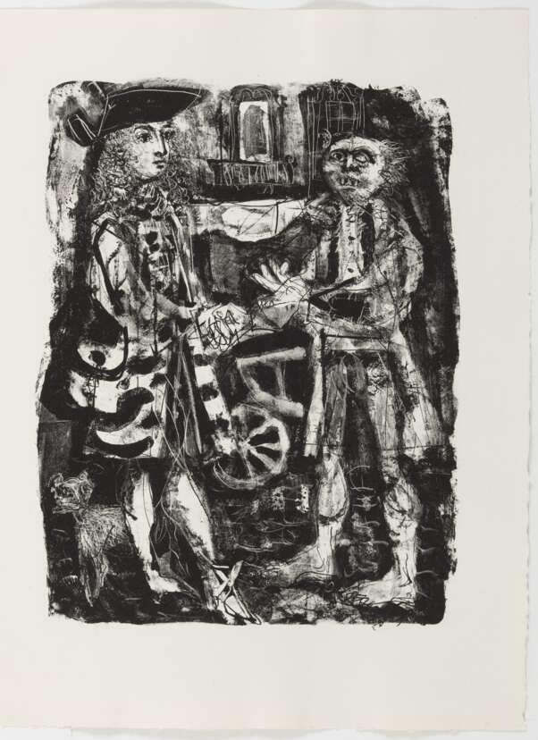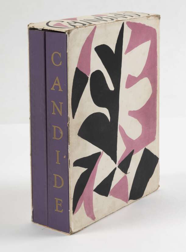 "Candide", 1946. Portfolio mit einer Tuschzeichnung mit Tempera auf Papier, der Suite "Plaches inutilisées" mit 53 Lithografien und der Suite "Illustrations avec remarques" mit 49 Lithografien auf Bütten, in Orig.-Umschlag mit Orig.-Schuber mit Farblithografien des Künstlers. Im Impressum nummeriert 18/30. Gesamtauflage: 250 Exemplare. Herausgeber: Chez Jean Porson, Paris.