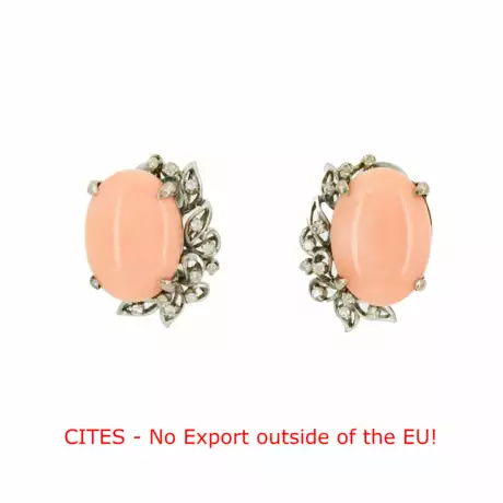 Description: A pair of ear studs made of white gold with oval angelskin coral cabochons. These are each