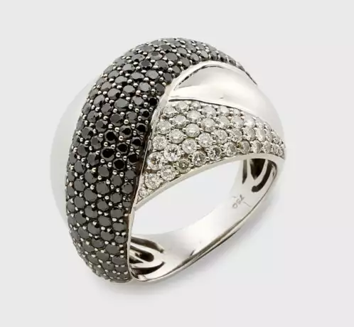Ring set with black and white diamonds of approx. 3,50 ct. in total, in 18 k white gold.
