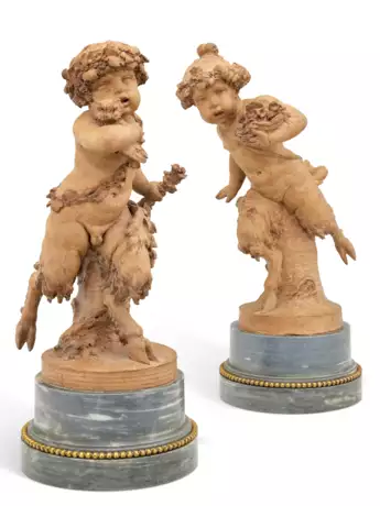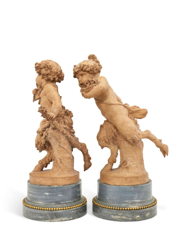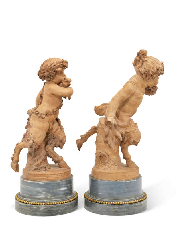 These two mythological figures belong to a corpus of works by Claude Michel, called Clodion (1738–1814), and his circle, which enjoyed great success in the final decades of the 18th century and was widely disseminated to meet the desires and tastes of patrons. Clodion, a central figure in French sculpture of his time, established himself as the undisputed master of terracotta. A pupil and nephew of Lambert-Sigisbert Adam, and later a pensionnaire at the Académie de France in Rome, he developed a distinctive style that combined refined modeling, freedom of invention, and a renewal of iconographic themes.