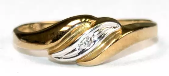 Diamant-Ring, 333er GG/WG, besetzt mit 1 Diamanten, Ges.-Gew. 0,75 g, RG 51