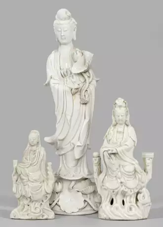 Los 2778 | Drei Blanc de Chine-Figuren einer Guanyin
