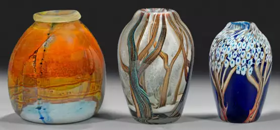 Three vases. One German by the studio of Erwin Eisch, signed and dated. Two US-American by Bruce Sillars, signed, numbered and titled.
