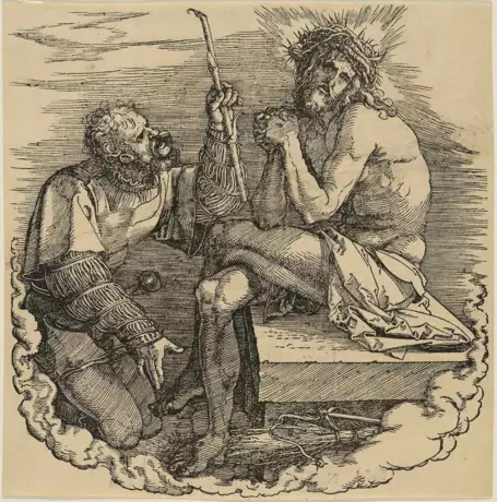 Schoch/Mende/Scherbaum 154; Meder 113 lateinische Textausgabe von 1511. - Schöner, gleichmässiger und klarer Druck, der typographische Text über und unterhalb der Darstellung beschnitten. Fachmännisch restaurierter Einriss, der vom oberen rechten Rand durch die linke Schulter des sitzenden Christus verläuft. Leichte Gebrauchsspuren. Die Rückseite unbedeutend stockfleckig und mit leichten Lagerungsspuren. Insgesamt in guter Erhaltung.