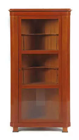 Los 475 | Eckvitrine im Biedermeierstil um 1900, Kirschbaum, eintüriger Korpus a…