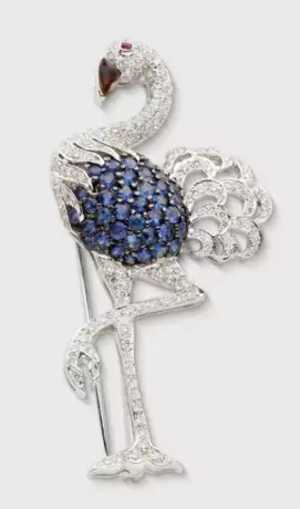 Brooch set with sapphires approx. 1,90 ct. and diamonds approx. 1,85 ct., in 18 k white gold.