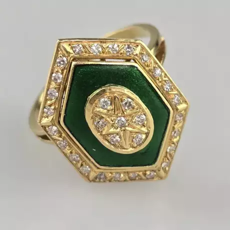 Los 208 | Emailring mit Diamantzier - Gelbgold 750/000 (18 K…