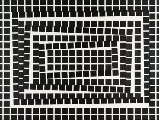 Entlang der Leinwandkanten minimal berieben. Einzelne winzige Klebereste (Atelier) altersbedingt leicht nachgedunkelt. Einzelne kaum merkliche Fleckchen, sonst sehr gut.