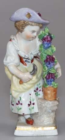 Los 309 | Figur "Gärtnerin mit Sichel", Sitzendorfer Porzellanmanufaktur, 20. Jh., polychrom bemalt, H. 10,5 cm