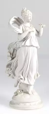 Los 377 | Frauenfigur "Allegorie des Frühlings", weißes Biskuitporzellan, Älteste Volkstädter Porzellanmanufaktur, Blüten min. best., H. 25 cm