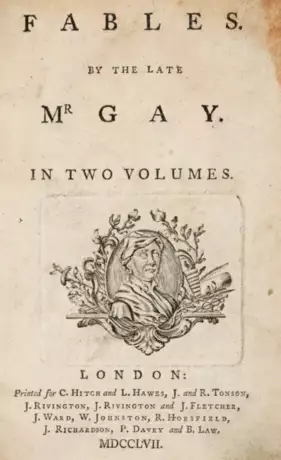 Ohne flieg. Vors. Stärkere Gebrauchssp. Gebräunt u. fleckig, tls. etw. gelockert. - ╔Dabei: Ders.╗ The fables. York, Wilson u.a. 1797. Mit Front. u. Textholzschn. Ldr. d. Zt. (Läd.). - Etw. gebräunt. - Zus. 2 Bde.