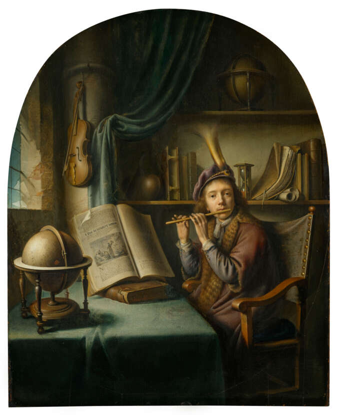 signed and indistinctly dated ‘GDou 16 […]’ (centre, on the edge of the book, 'GD' in ligature)