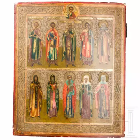 Los 7651 | Großformatige Ikone mit zehn Heiligen, Russland, Ende 19. Jhdt.