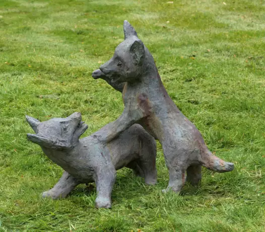 Bronze, in graugrünen und dunklen Tönen patiniert. Ligatur-Monogramm. Die fast zeitlebens in Fürth tätige Bildhauerin und Malerin studierte an den Akademien in Nürnberg und München. In der Tradition der Klassischen Moderne stellte sie Menschen, Märchenfiguren und ganz besonders Tiere dar, geformt und ausgeführt in unterschiedlichen Materialien wie Bronze, Stein und Kunststein, Keramik etc.; Ihre Werke stellte Kunstmann zahlreich im In- und Ausland aus, u. a. im Münchener "Haus der Kunst" und im "Musée d'art moderne" in Paris. Viele Arbeiten entstanden für den öffentlichen Raum in Fürth und benachbarten Nürnberg, außer im dortigen Tiergarten finden sich ihre Tierplastiken auch in den Zoos von Wuppertal, Innsbruck, Landau, Heidelberg und Kronberg sowie im Stadtgarten in Karlsruhe. H. 70 cm.