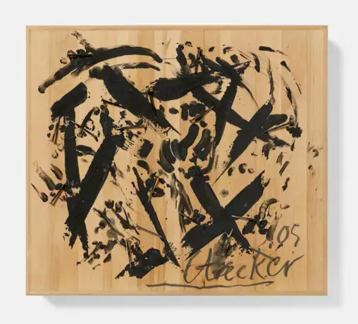 Wooden box, worked with nails and paint. 48 x 53.5 x 8 cm. Signed and dated lower right: Uecker 05. Box with 20 silkscreen prints on laid card. Each: sheet 43 x 48 cm. Signed, dated and numbered. Eremiten-Presse, Düsseldorf (publisher). Ex. 38/60.