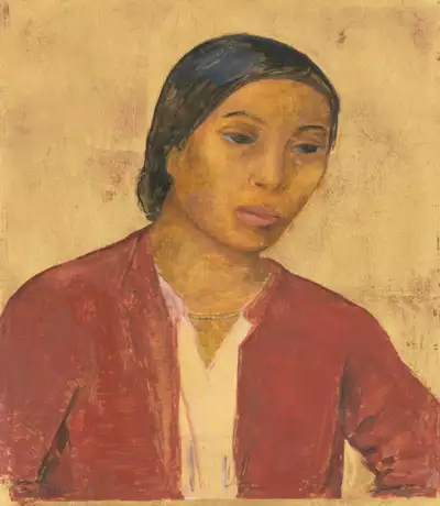 Javanerin. Öl über Goldgrund auf Holz. 26,6x23,3 cm. Gerahmt.