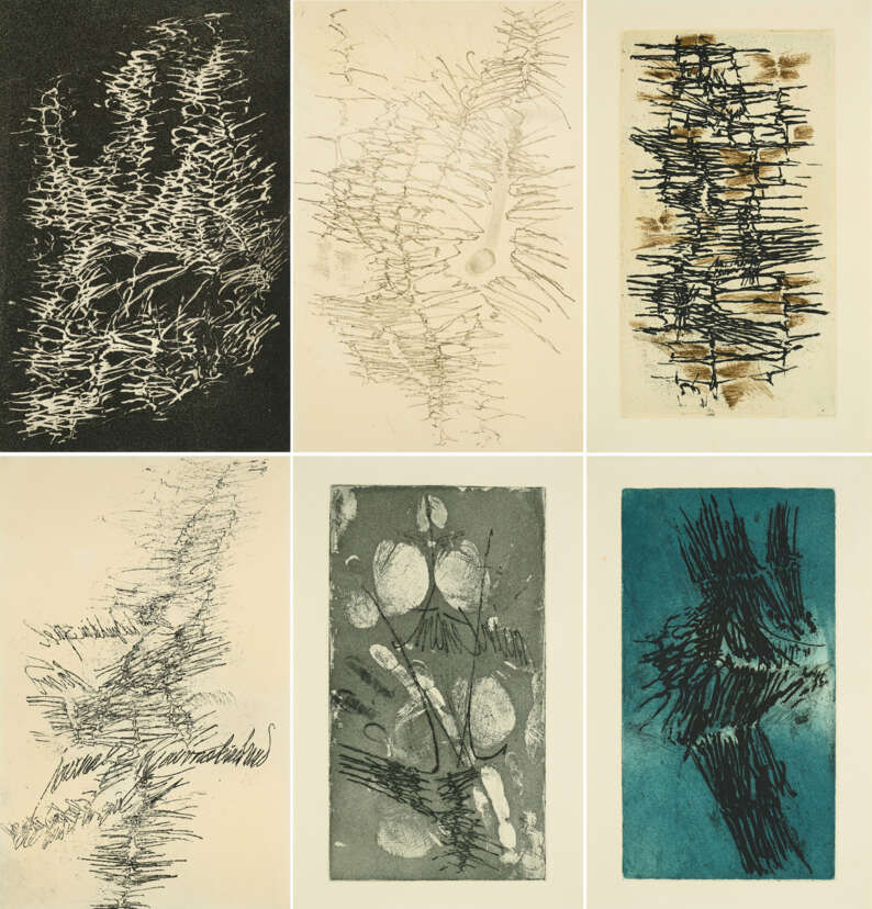 Technique: Each: Colour etching on Laid paper (two double-sided).