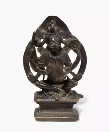 Indien, 20.Jh. Gelbguss. Sitzender Hanuman auf Sockel. H 16 cm.