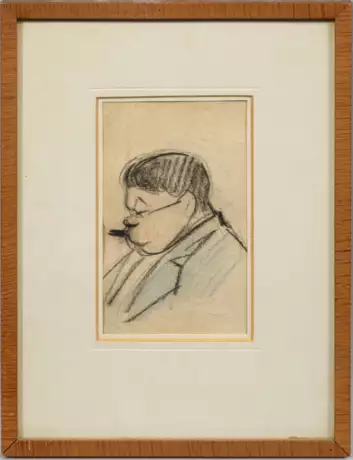 Kohle und Farbkreide/Papier, kaschiert auf Unterlegpapier. Oberhalb Signaturstempel in Rot (Lugt 2676b, stark ausgeblichen). Das Unterlegpapier unterhalb bez. bzw. num. sowie rücks. gestempelt "Unveröffentlicht Nr. 524". Blatt ca. 14,6 cm x 9,9 cm. Blatt (Unterlegpapier) 19,5 cm x 11 cm. Rahmen.