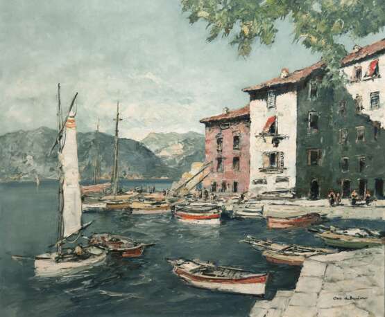 Los 26 | Hellmeier, Otto (1908 Weilheim-1996 ebenda) "Porto di Brenzone Gardasee", Öl/ Lw., sign. u.r., rückseitig auf Lw. bez., 71x80,5 cm, Rahmen