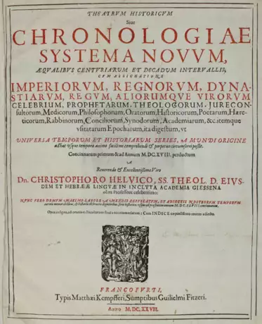 VD17 23:265918U. Dritte Ausgabe. - Christoph Helwig (1581-1617), Chronist, Linguist, Professor für klassische und orientalische Sprachen und später Inhaber des Lehrstuhls für Theologie an der Universität Gießen. Das ursprünglich 1609 veröffentlichte Werk tritt in die Fußstapfen der chronologischen Werke von Joseph Scaliger und Denis Pétau. Aufgeteilt in Intervalle von zehn, fünfzig und hundert Jahren, geordnet nach Königreichen und Themen, decken die Tafeln den Zeitraum von der Erschaffung der Welt bis 1612 ab. Für diese erste posthume Wiederveröffentlichung wurden die Tabellen überarbeitet und bis 1628 fortgeführt. - Schwach wasserrandig, etw. gebräunt u. vereinzelt schwach fleckig. Mit gest. Exlibris v. Christian Hammer, Stockholm.