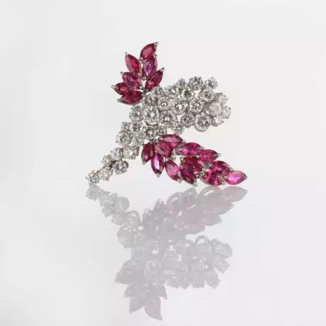 Los 91 | Hochfeine Rubin Brosche mit fein-weißen Brillanten.
