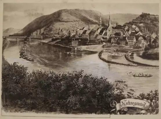 Dabei: Derselbe. Gruss aus dem Odenwald. Unten Mitte signiert. 17,8 x 40 cm.