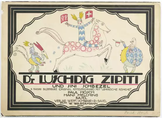 Thieme-Becker XVII, 542. LSB S. 38 (mit Abb. Tafel 14). Kaiser, Schweizer Bilderbücher aus 100 Jahren, S. 29 (mit Abb. S. 28). - Erste Ausgabe des einzigen Bilderbuches des Architekten und Graphikers Paul Hosch (1886-1975). Die Bilderfolge gilt als eines der schönsten Schweizer Kinderbücher. Die Tafeln im Stil der Wiener Werkstätte, jeweils mit einem kurzen erklärenden Text in Schweizerdeutsch. - Hosch bereiste nach seinem Architekturstudium Amerika, Japan, China, Indien und Ägypten und gründete in Basel mit seinem Schüler Hans Melching die "Schweizer Werkstätten", die stark vom Wiener Jugendstil beeinflusst waren. - Umschlag etwa gebräunt und berieben, mit kleinen Randeinrissen und gestauchten Ecken.