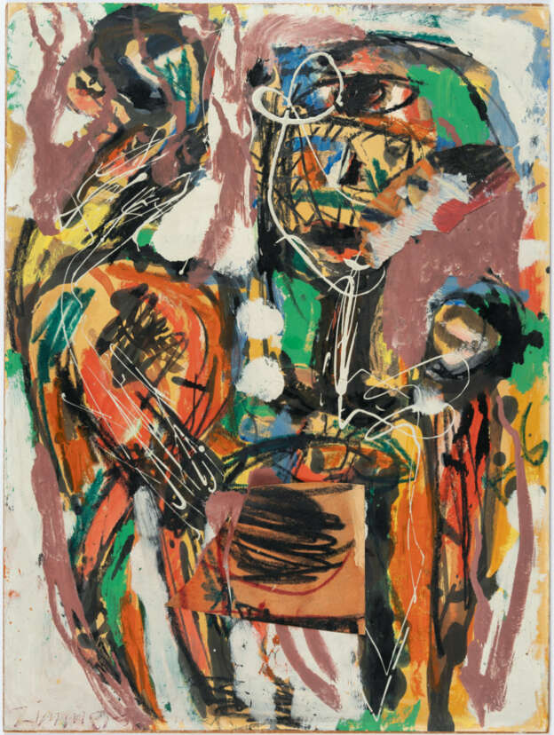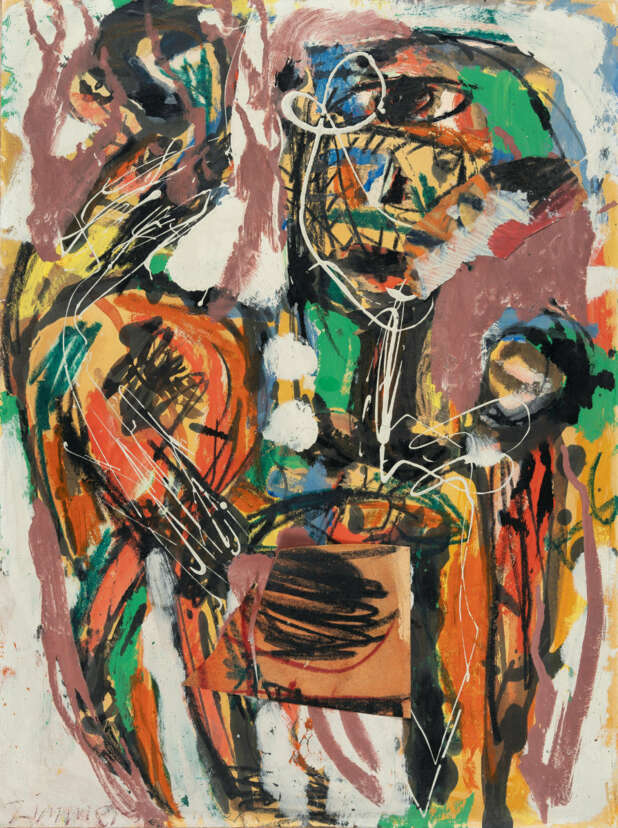 Stellenweise Papierablösung von der Unterlage, partiell minimales Craquelé, sonst in gutem Zustand.