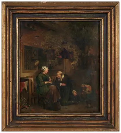 Oil on panel, signed lower left, 16.1 x 14.1 in, with frame : 21.5 x 19.6 in
