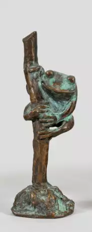 Bronze, grün patiniert. Die Bildhauerin schuf zahlreiche Bronzeplastiken für den öffentlichen Raum und für Kirchen vor allem in Westfalen. H. 19 cm.