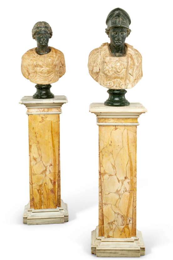 Les bustes : H. 62 et 66,5 cm. (243/8 et 261/8 in.)